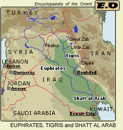 River of Turkey, Syria and Iraq. Its length is 1,850 km, and it has two principal sources, Lake Hazer and Lake Van, both in Anatolia in Turkey. These two streams joins at Til in Turkey. Tributaries include Great Zab, Little Zab, Diyala, and Adhaim.
